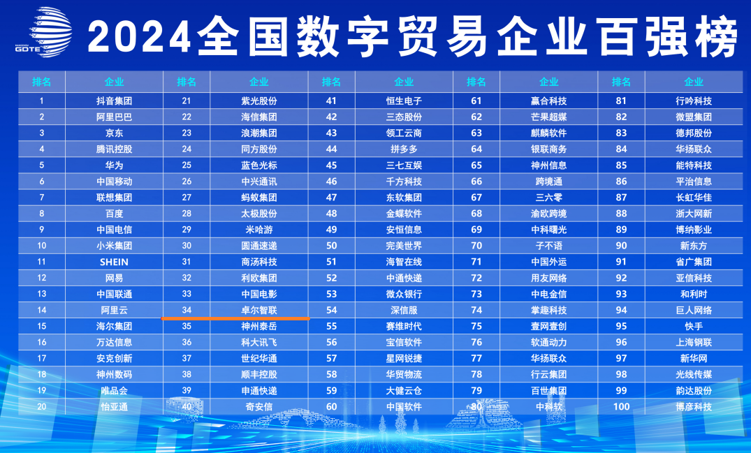9月25日,,,,第三届全球数字贸易博览会在杭州开幕,,,,赛迪顾问股份有限公司在会上发布了《2024中国数字贸易企业竞争力研究》及2024全国数字贸易企业百强榜,,,尊龙时凯同阿里、、、、京东、、腾讯等知名企业一同入选榜单,,,,位列第34位。。。